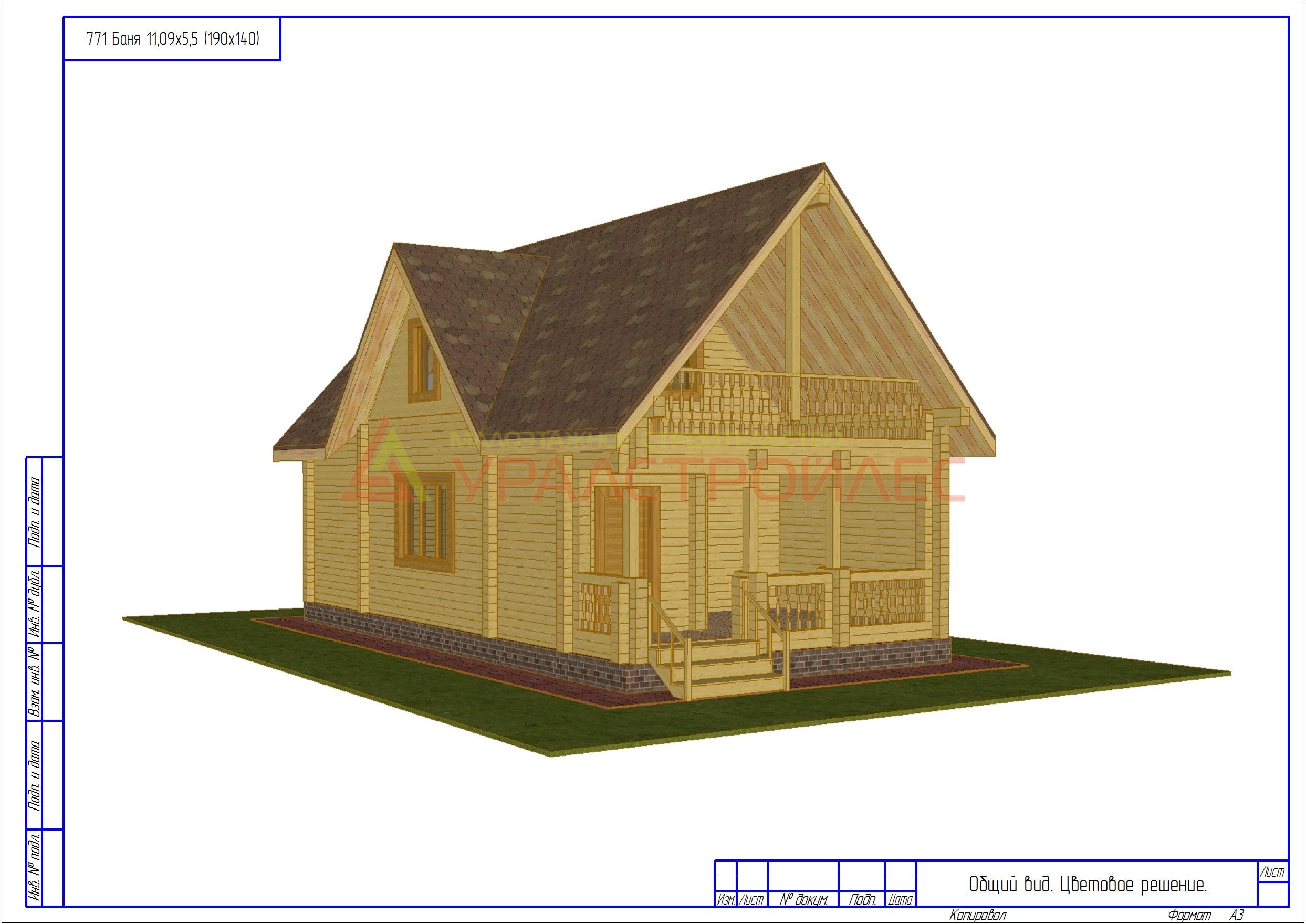 Проект № 771  Дом Баня  Двух этажная Брус 140х190